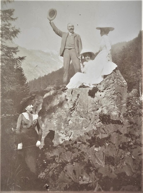 Gerbeaud Emil családja körében kirándul. A képen látható jeleneten Gerbeaud két lányával felmászott egy