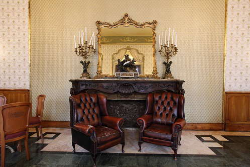 3.) A Gerbeaud család kis szalonja. A képen Stróbl Alajosnak Gerbeaud Emilről készített márványszobra